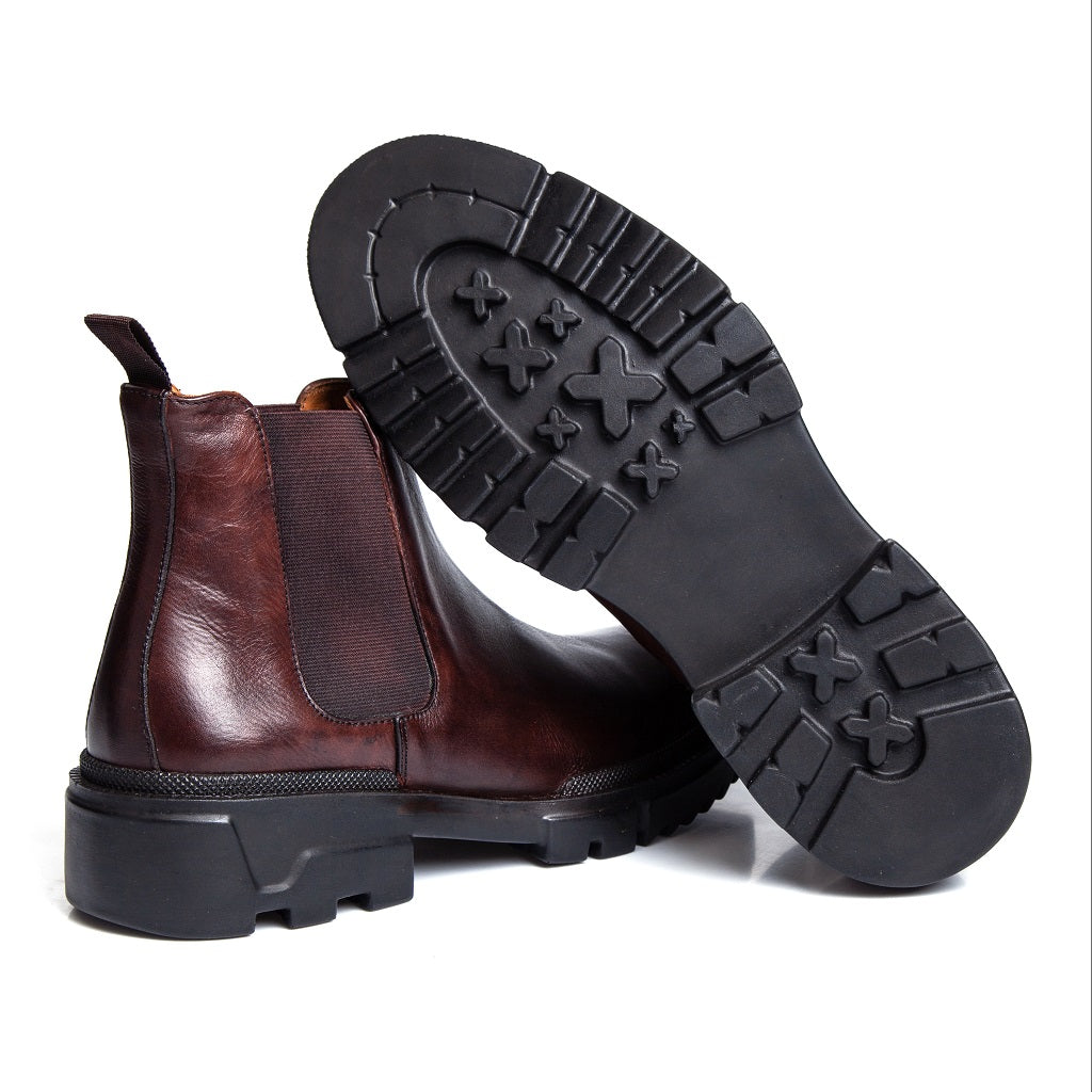 La bota masculina Zadar es la expresión máxima del lujo artesanal. De estilo chelsea, con elásticos tradicionales y confeccionada 100% en cuero, viene completamente forrada en cuero para entregar un tacto exclusivo y una comodidad superior.