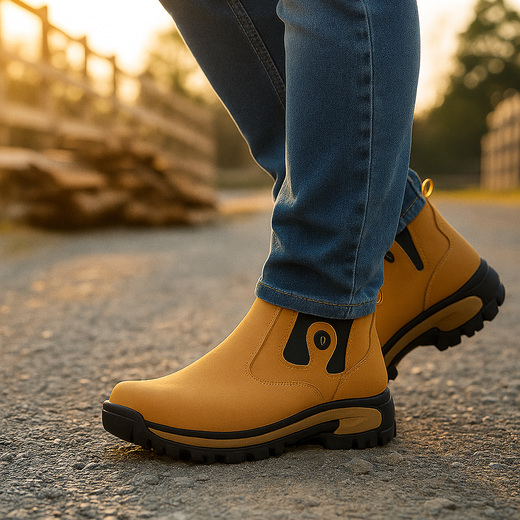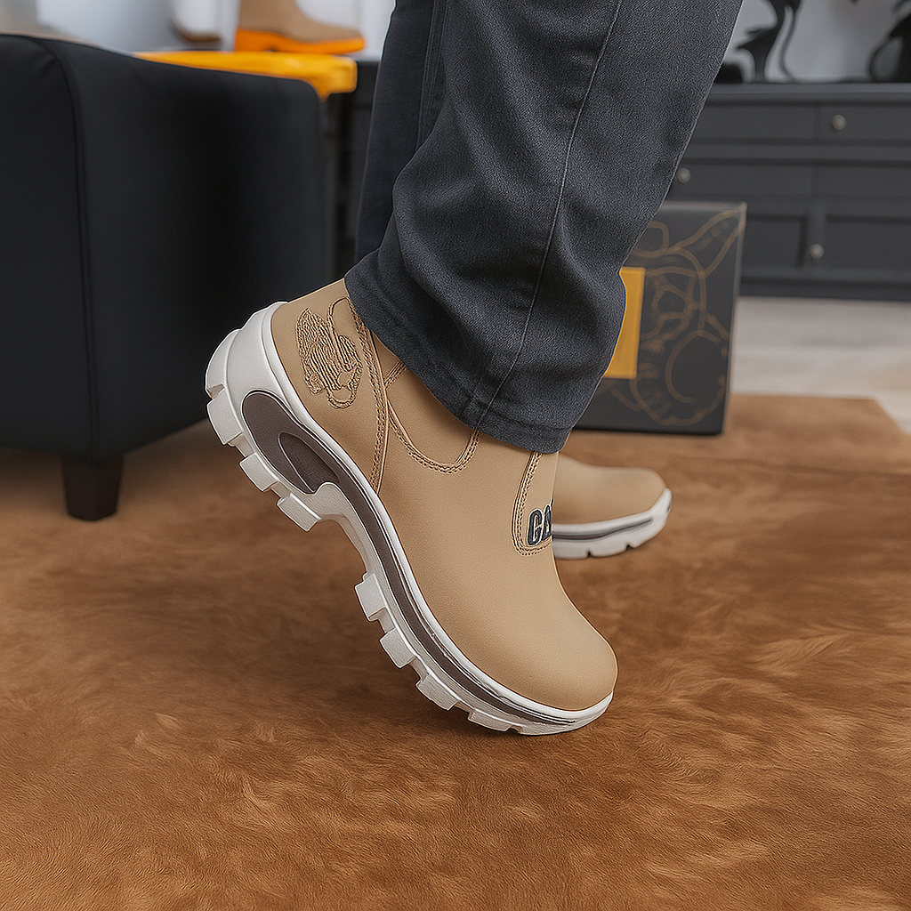 La bota está hecha en cuero auténtico grueso, curtido para resistir desgaste y mantener su porte con el tiempo. La suela ofrece un agarre sólido incluso en superficies complicadas, acompañada por una estructura interna estable y bien lograda. Cada pieza está pensada para dar ese plus de firmeza que distingue a un hombre que sabe elegir calidad real.