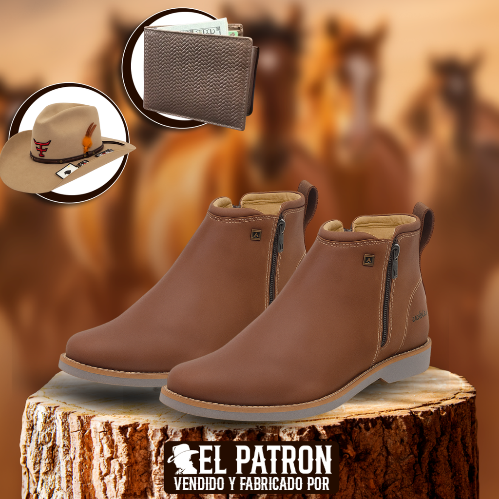 Además de la bota, recibís un sombrero y una billetera que refuerzan tu estilo con la misma esencia de calidad. Son detalles que suman potencia a tu imagen, perfectos para el hombre que sabe que cada elemento habla de quién es. Un conjunto a la altura de quienes se mueven con presencia, decisión y personalidad de patrón.
